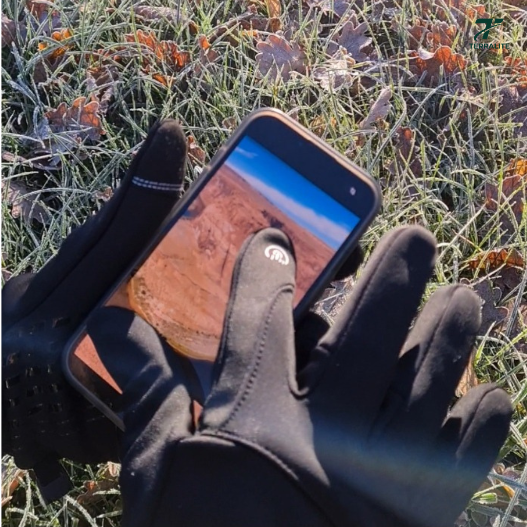 Terralite hält dich warm, gibt dir sicheren Grip und lässt dich verbunden bleiben – ohne die Handschuhe auszuziehen.